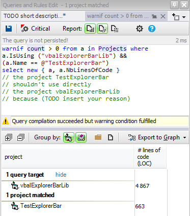 Once you've analyzed your first VB6 code base with VBDepend, you'll see that the VBDepend project created contains around 80 default CQLinq queries and rules, categorized in different groups.