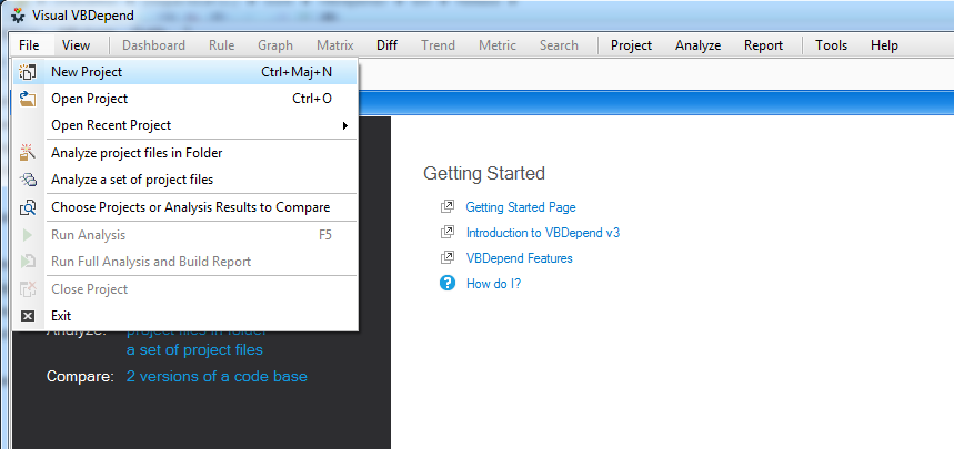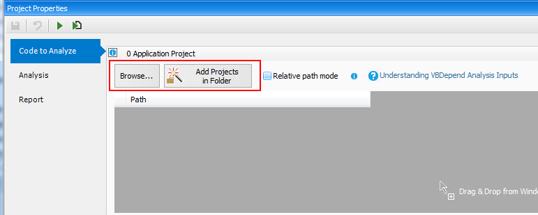 Click the "Run" button to analyze your projects and code source by VBDependConsole.exe